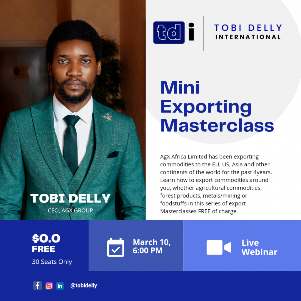 Tobi Delly International is Africa’s leading Business development consultant with business interest in several industries established and not established, i.e. new business fields. We consult for several businesses in and out of the African continent. Our CEO, Tobi Delly, has trained and mentored thousands of young people and entrepreneurs across the country in professional development, personal development, personal finance, and entrepreneurial mastery.