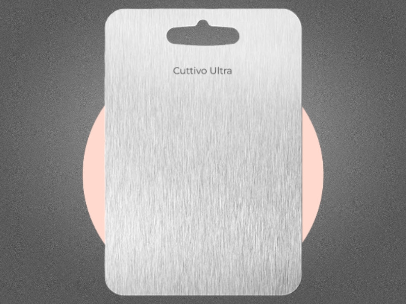 Cuttivo Ultrais a high-end cutting board made from 100% titanium. Its surface is non-porous and free of microplastics, so it doesn't absorb smells, stains, or mold.