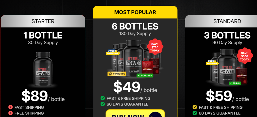 Free Testosterone Optimization: Most testosterone in the male body is "bound" and unusable. Steel Power contains ingredients that help release "Free Testosterone," which is responsible for muscle growth, mood, and libido.